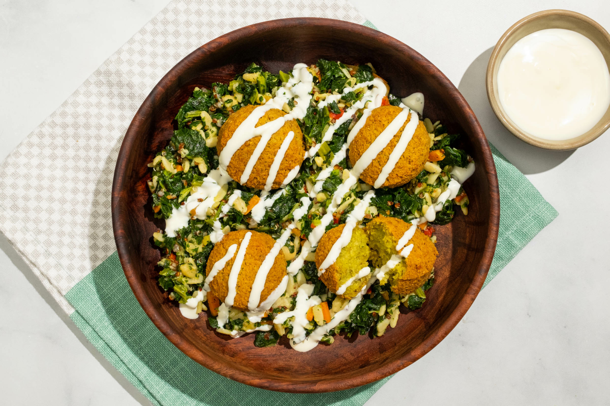 Falafel valmistetaan tuoreista raaka-aineista joka päivä.